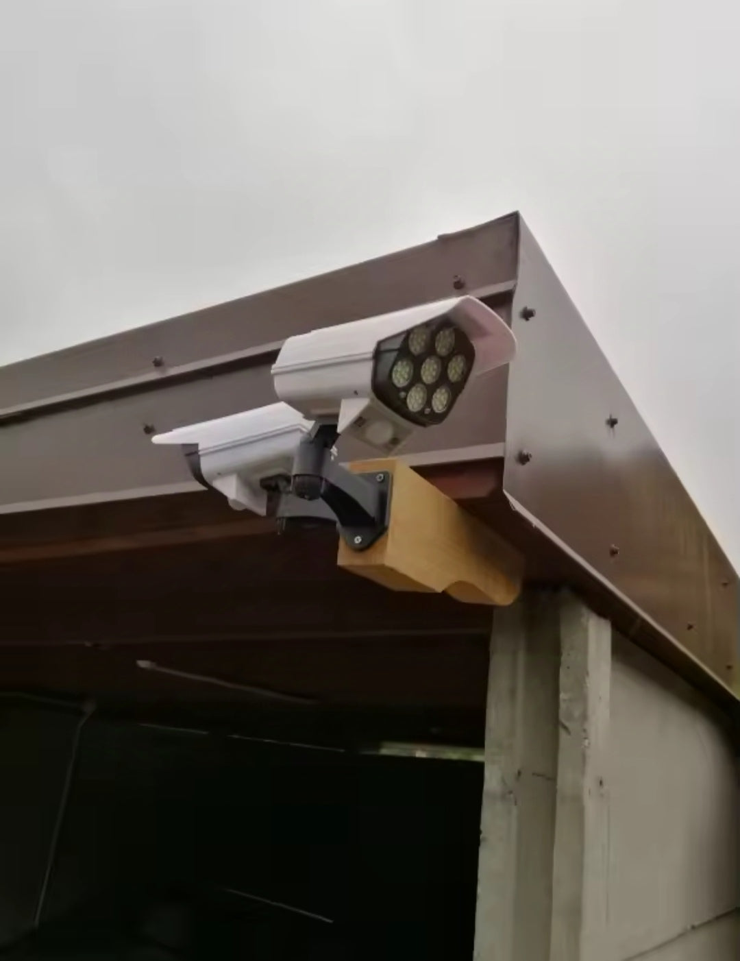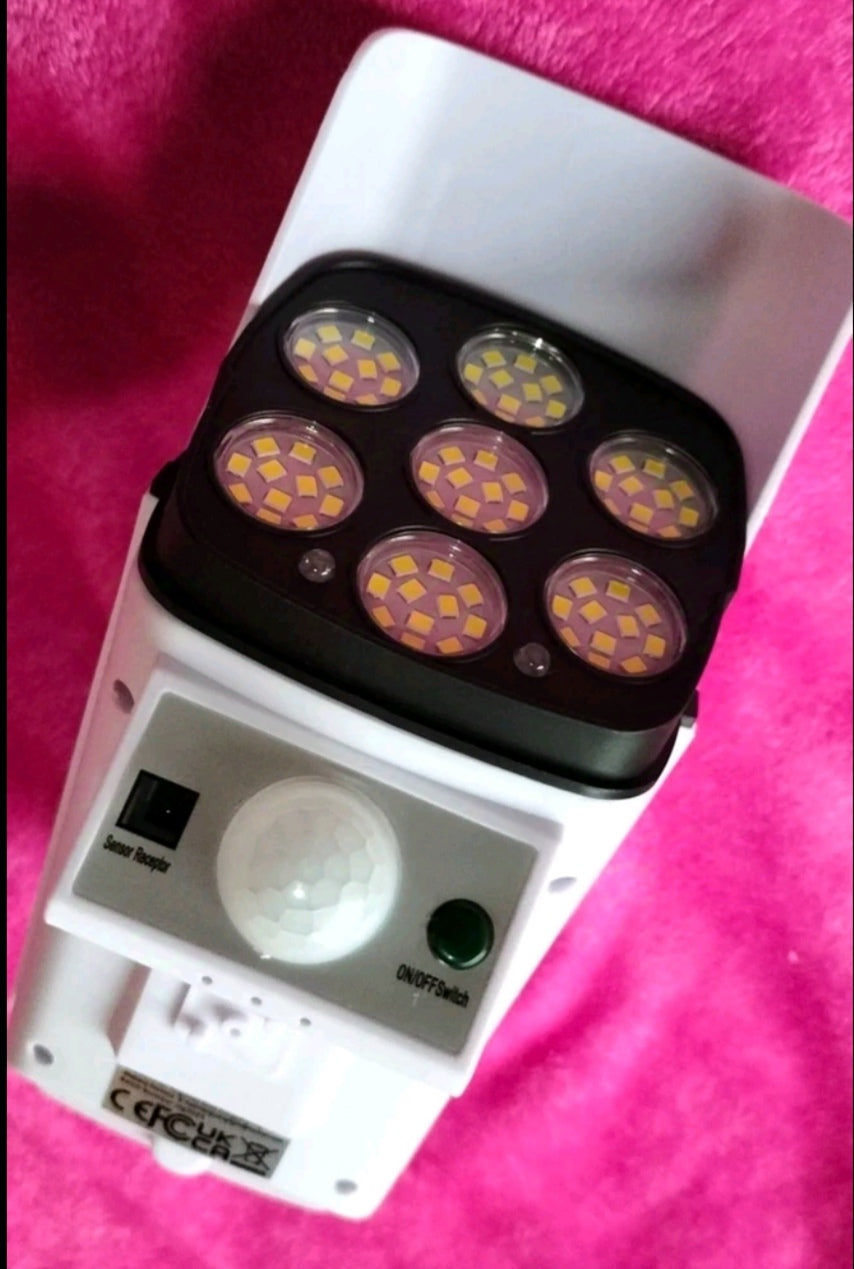 con un foco solar que ahorra energía, imita una cámara de seguridad